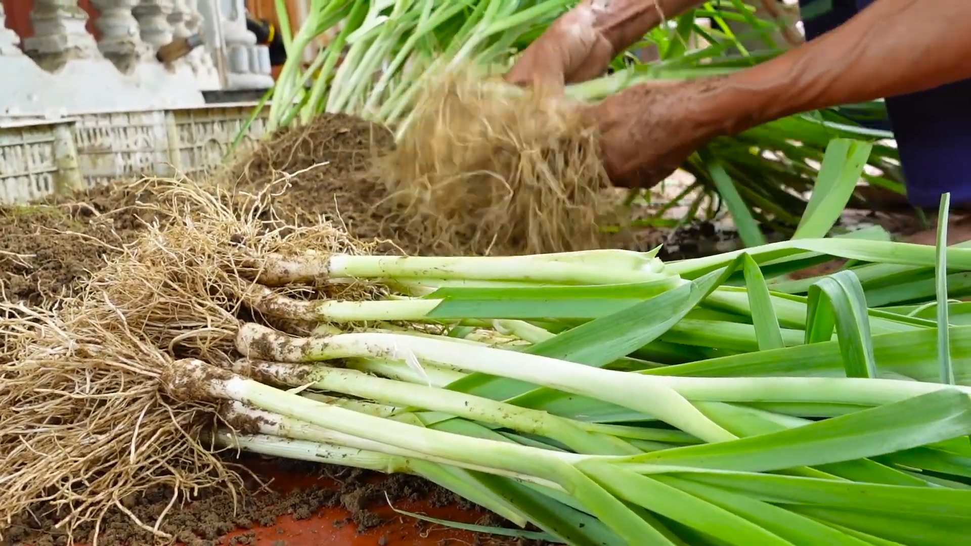 1. Erntezeitpunkt: Der Lauch ist erntereif, wenn die Schäfte eine ausreichende Größe erreicht haben (ca. 2-3 cm Durchmesser).